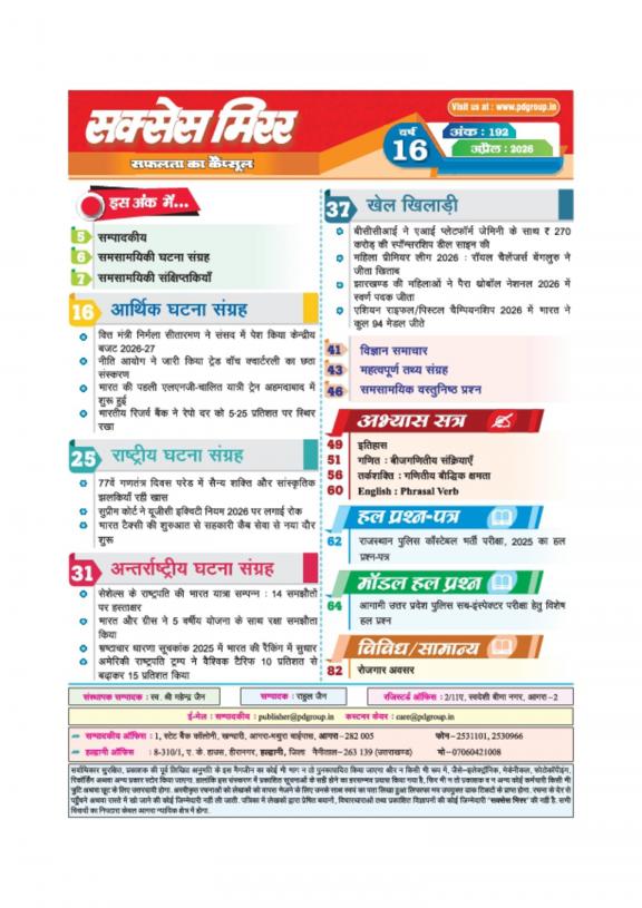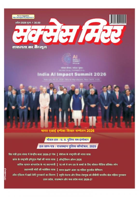 Success Mirror - Hindi is a Youth Oriented and This magazine provides - Overview of Latest events and Information which are useful for competitive Exams - Solved Question Paper and Career development Guidelines - Information about Jobs in Govt Sectors