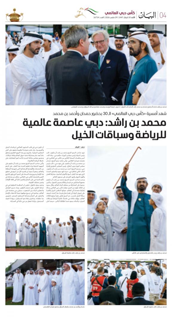 يمكنك الآن الاستمتاع بتصفح النسخة الرقمية، والتي هي طبق الأصل عن النسخة الورقية لصحيفة البيان على هاتفكم الذكي أو الجهاز اللوحي أو على شاشة الحاسوب. النسخة الرقمية تتيح لكم تجربة متميزة للعدد اليومي بكل المقالات والأخبار والميزات وبطريقة سلسة حيث يمكنكم التمتع بقراءة صفحاتكم المفضلة مع إمكانية البحث ومشاركة الأخبار في أي وقت وأي مكان كمرادف عن النسخة الورقية. بالإضافة لميزة القراءة بدون إنترنت عند تحميل النسخة المطلوبة وميزات أخرى ستتعرفون عليها عند تحميل التطبيق. في العاشر من مايو سنة 1980 صدر العدد الأول من صحيفة "البيان" لكي تشكل خلال رحلة مستمرة خلال العقود الأربعة مدرسة صحافية خرجت أجيالا من الصحافيين على مستوى دولة الإمارات والعالم العربي. وتصدر الصحيفة، التي تتبع مؤسسة دبي للإعلام، يومياً في نسخ ورقية ورقمية، تصل الى جمهور عريض من المتابعين في دولة الإمارات وعلى امتداد العالم العربي والعالم.