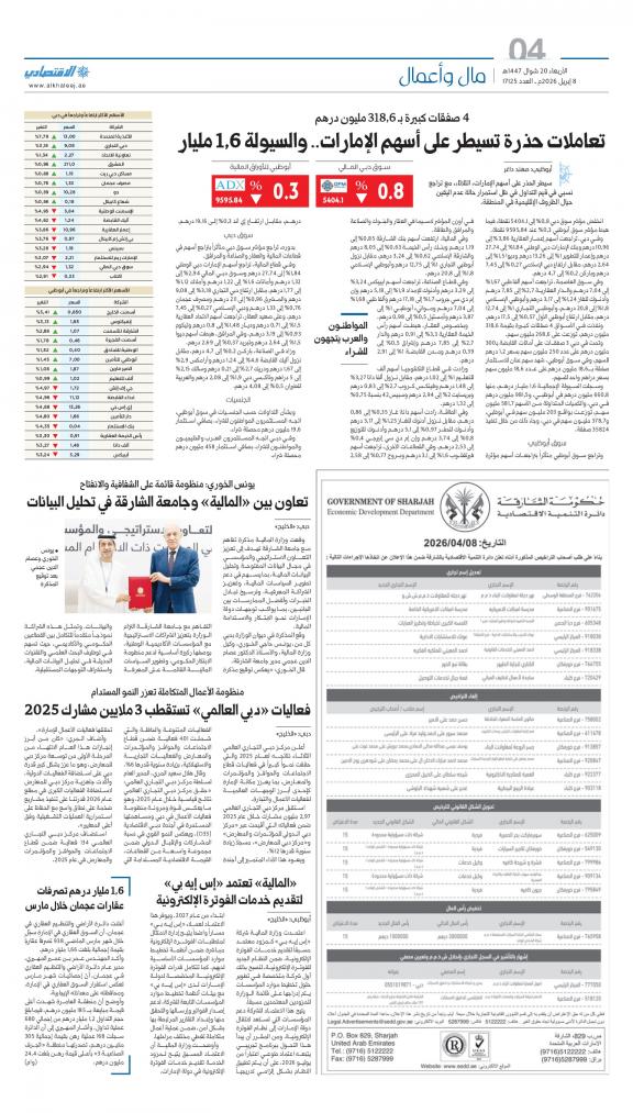 Al Khaleej Economy (Arabic: اقتصاد الخليج) is a daily Arabic-language broadsheet newspaper published in Sharjah, United Arab Emirates by Dar Al Khaleej. This newspaper is exclusive for the economy news and about trade information in the country.
