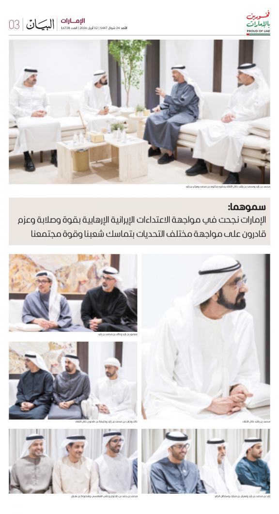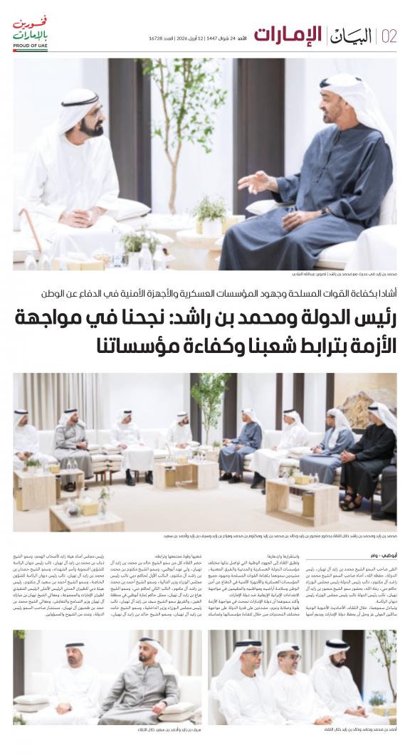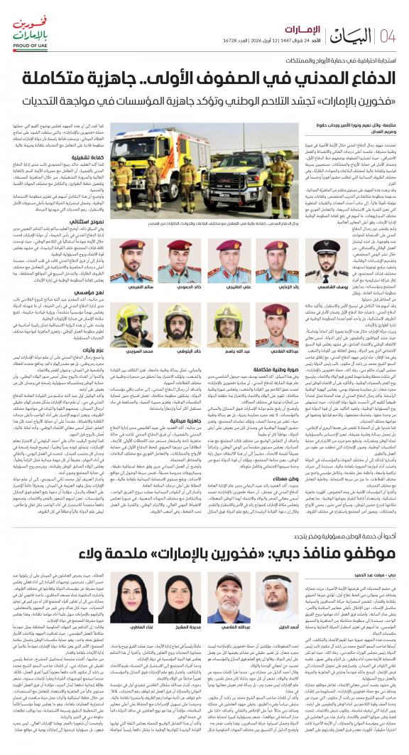 يمكنك الآن الاستمتاع بتصفح النسخة الرقمية، والتي هي طبق الأصل عن النسخة الورقية لصحيفة البيان على هاتفكم الذكي أو الجهاز اللوحي أو على شاشة الحاسوب. النسخة الرقمية تتيح لكم تجربة متميزة للعدد اليومي بكل المقالات والأخبار والميزات وبطريقة سلسة حيث يمكنكم التمتع بقراءة صفحاتكم المفضلة مع إمكانية البحث ومشاركة الأخبار في أي وقت وأي مكان كمرادف عن النسخة الورقية. بالإضافة لميزة القراءة بدون إنترنت عند تحميل النسخة المطلوبة وميزات أخرى ستتعرفون عليها عند تحميل التطبيق. في العاشر من مايو سنة 1980 صدر العدد الأول من صحيفة "البيان" لكي تشكل خلال رحلة مستمرة خلال العقود الأربعة مدرسة صحافية خرجت أجيالا من الصحافيين على مستوى دولة الإمارات والعالم العربي. وتصدر الصحيفة، التي تتبع مؤسسة دبي للإعلام، يومياً في نسخ ورقية ورقمية، تصل الى جمهور عريض من المتابعين في دولة الإمارات وعلى امتداد العالم العربي والعالم.